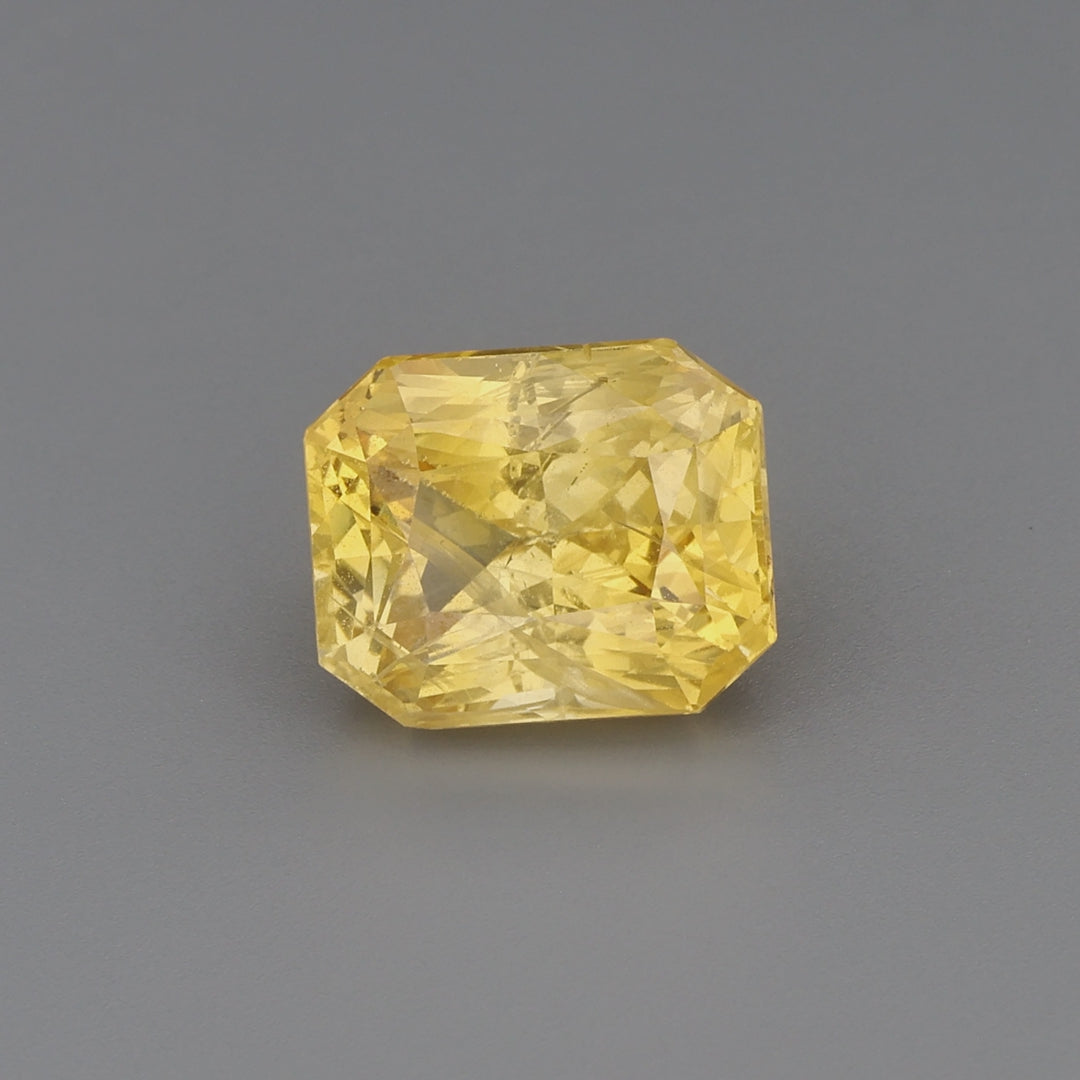 A striking vivid yellow natural sapphire, masterfully crafted in a rectangular mixed cut that enhances its brilliance and depth. This gem radiates warmth and vibrancy, making it a perfect centerpiece for both classic and contemporary jewelry designs. A symbol of prosperity and elegance, this sapphire is a timeless treasure.